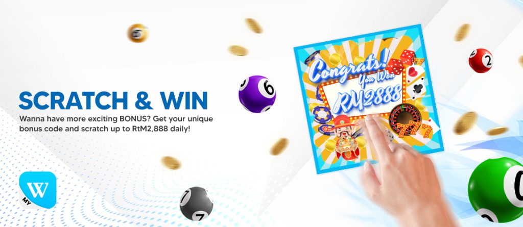 Wanna have more exciting BONUS? Get your unique bonus code and scratch up to RM2,888 daily!